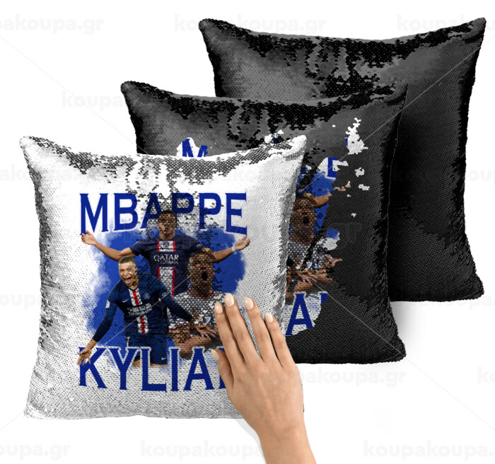 Kylian Mbappé, Μαξιλάρι καναπέ Μαγικό Μαύρο με πούλιες 40x40cm περιέχεται το γέμισμα
