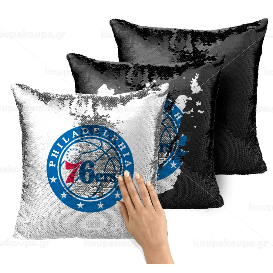 Philadelphia 76ers, Μαξιλάρι καναπέ Μαγικό Μαύρο με πούλιες 40x40cm περιέχεται το γέμισμα