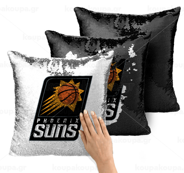 Phoenix Suns, Μαξιλάρι καναπέ Μαγικό Μαύρο με πούλιες 40x40cm περιέχεται το γέμισμα