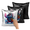 Stitch Basketball, Μαξιλάρι καναπέ Μαγικό Μαύρο με πούλιες 40x40cm περιέχεται το γέμισμα