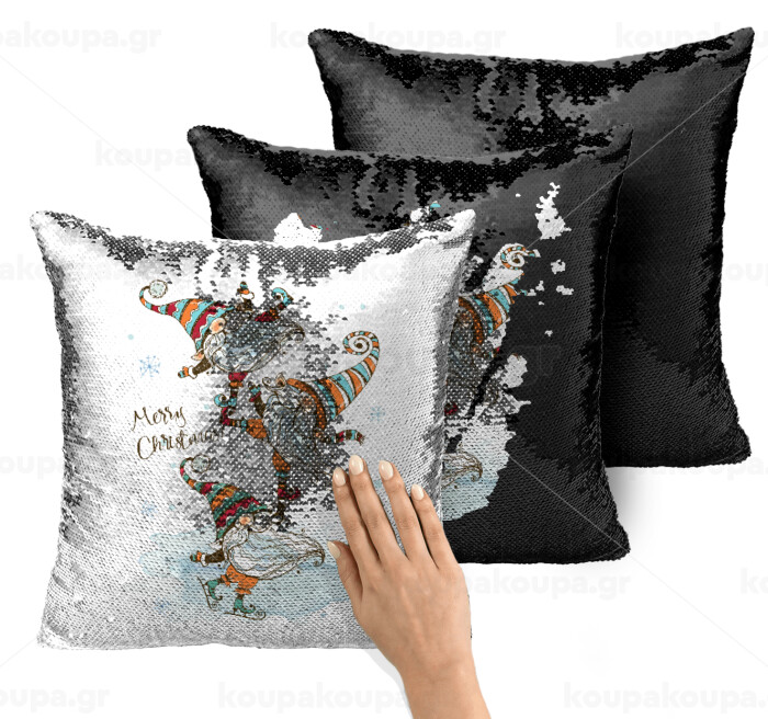 Christmas nordic gnomes, Μαξιλάρι καναπέ Μαγικό Μαύρο με πούλιες 40x40cm περιέχεται το γέμισμα