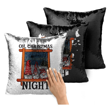 Oh Christmas Night, Μαξιλάρι καναπέ Μαγικό Μαύρο με πούλιες 40x40cm περιέχεται το γέμισμα