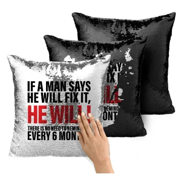 If a man says he will fix it He will There is no need to remind him every 6 months, Μαξιλάρι καναπέ Μαγικό Μαύρο με πούλιες 40x40cm περιέχεται το γέμισμα