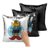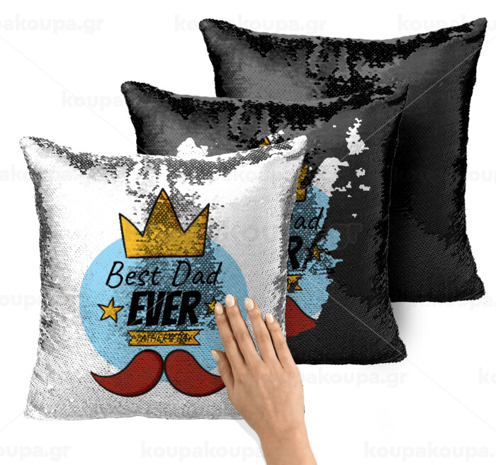 King, Best dad ever, Μαξιλάρι καναπέ Μαγικό Μαύρο με πούλιες 40x40cm περιέχεται το γέμισμα