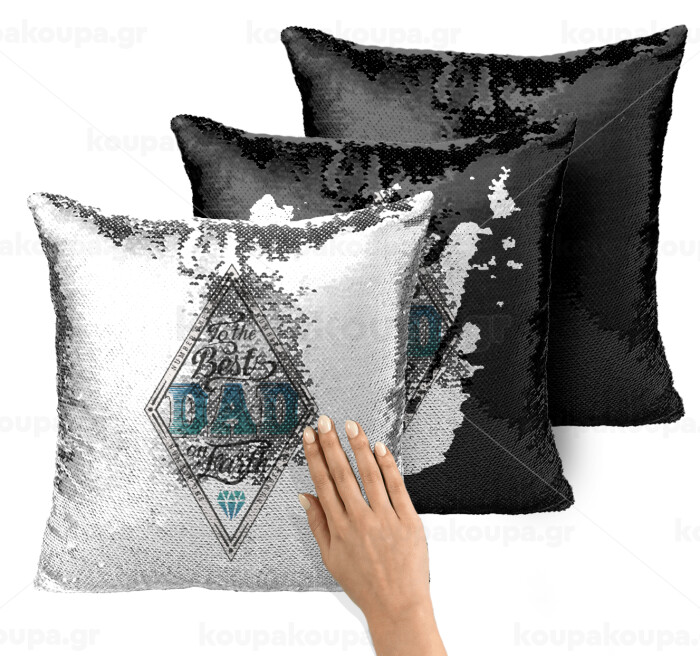 To the best DAD on earth, Μαξιλάρι καναπέ Μαγικό Μαύρο με πούλιες 40x40cm περιέχεται το γέμισμα
