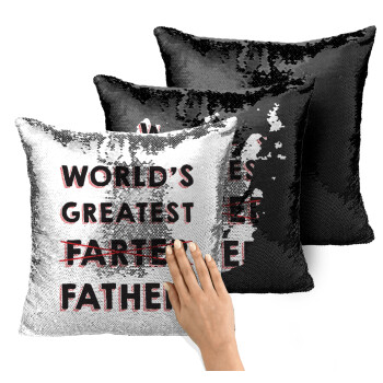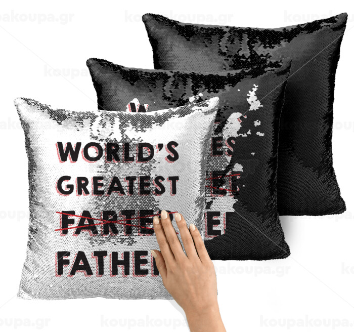 World's greatest farter, Μαξιλάρι καναπέ Μαγικό Μαύρο με πούλιες 40x40cm περιέχεται το γέμισμα