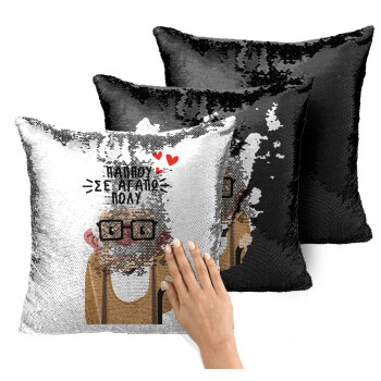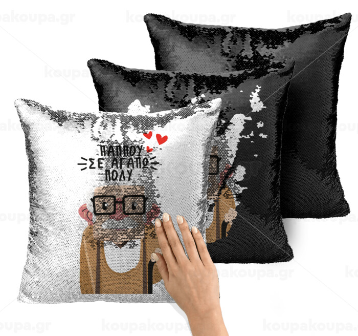 Παππού σε αγαπώ πολύ!, Μαξιλάρι καναπέ Μαγικό Μαύρο με πούλιες 40x40cm περιέχεται το γέμισμα