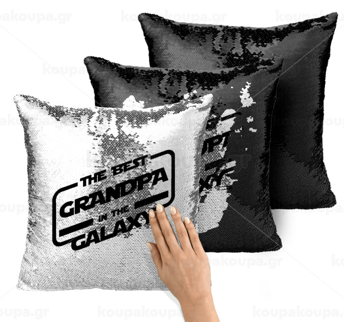 The Best GRANDPA in the Galaxy, Μαξιλάρι καναπέ Μαγικό Μαύρο με πούλιες 40x40cm περιέχεται το γέμισμα