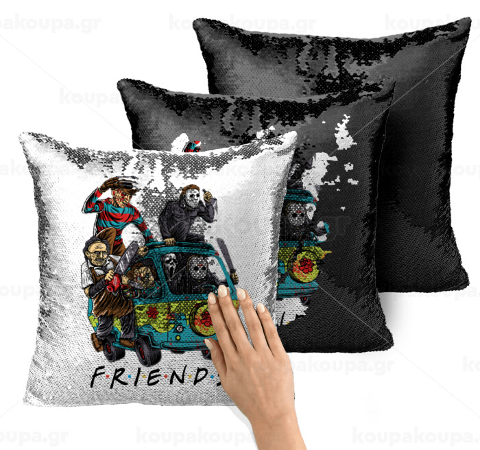 Halloween Friends Scooby Doo, Μαξιλάρι καναπέ Μαγικό Μαύρο με πούλιες 40x40cm περιέχεται το γέμισμα
