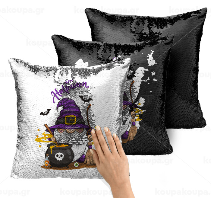 Happy Halloween (Χαλοουίν), Μαξιλάρι καναπέ Μαγικό Μαύρο με πούλιες 40x40cm περιέχεται το γέμισμα