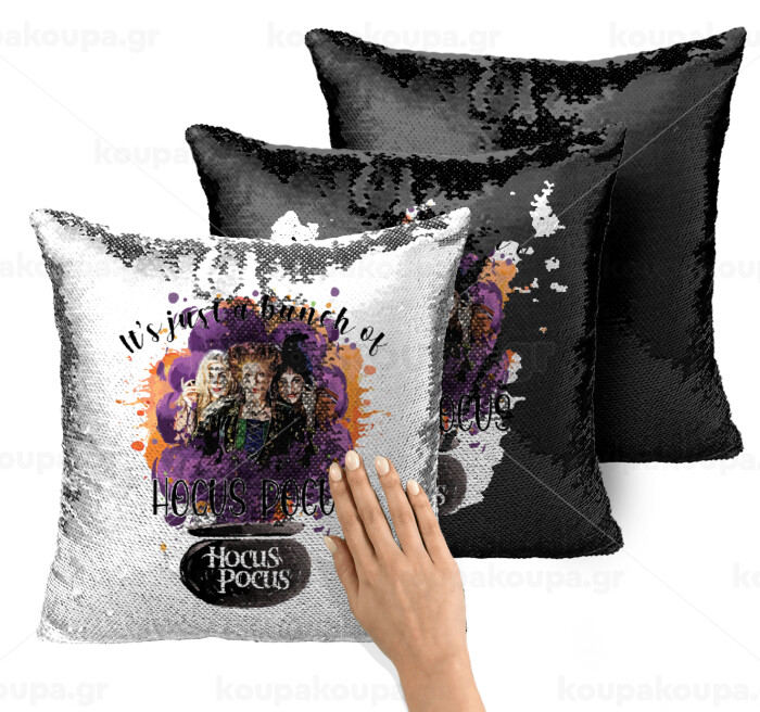 Hocus Pocus, Μαξιλάρι καναπέ Μαγικό Μαύρο με πούλιες 40x40cm περιέχεται το γέμισμα