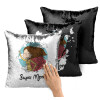 Super mom, Μαξιλάρι καναπέ Μαγικό Μαύρο με πούλιες 40x40cm περιέχεται το γέμισμα