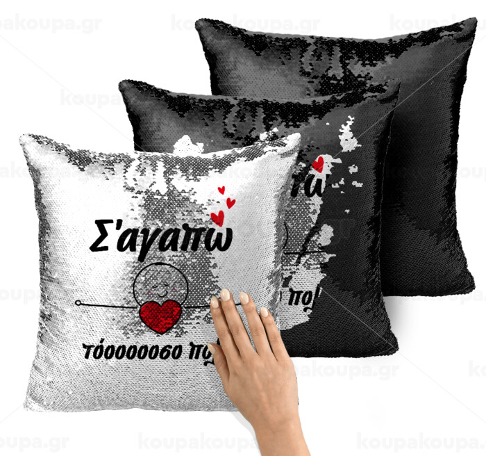 Σ΄αγαπώ τόοοοσο πολύ (Κορίτσι)!!!, Μαξιλάρι καναπέ Μαγικό Μαύρο με πούλιες 40x40cm περιέχεται το γέμισμα
