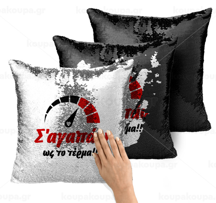 Σ΄ αγαπώ ως το τέρμα!!!, Μαξιλάρι καναπέ Μαγικό Μαύρο με πούλιες 40x40cm περιέχεται το γέμισμα