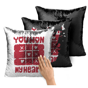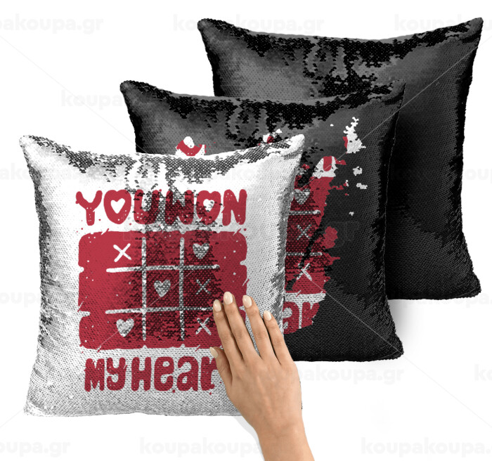 Τρίλιζα you won my heart, Μαξιλάρι καναπέ Μαγικό Μαύρο με πούλιες 40x40cm περιέχεται το γέμισμα