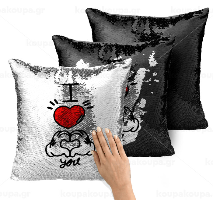 comics hands love, Μαξιλάρι καναπέ Μαγικό Μαύρο με πούλιες 40x40cm περιέχεται το γέμισμα