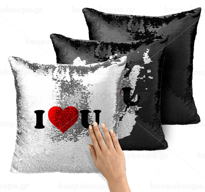 I ❤️ U, Μαξιλάρι καναπέ Μαγικό Μαύρο με πούλιες 40x40cm περιέχεται το γέμισμα