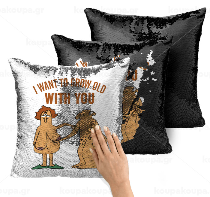 I want to grow old with you, Μαξιλάρι καναπέ Μαγικό Μαύρο με πούλιες 40x40cm περιέχεται το γέμισμα
