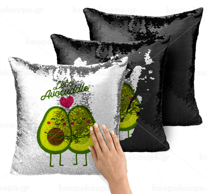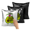 Let's avocuddle, Μαξιλάρι καναπέ Μαγικό Μαύρο με πούλιες 40x40cm περιέχεται το γέμισμα