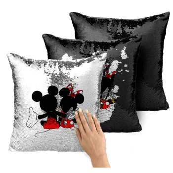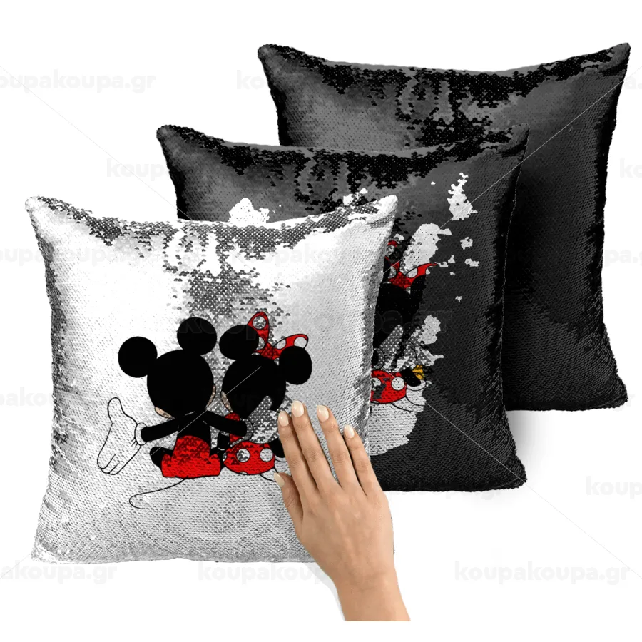 mickey and minnie hags, Μαξιλάρι καναπέ Μαγικό Μαύρο με πούλιες 40x40cm περιέχεται το γέμισμα
