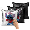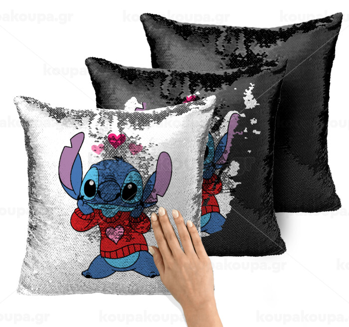 Stitch heart, Μαξιλάρι καναπέ Μαγικό Μαύρο με πούλιες 40x40cm περιέχεται το γέμισμα