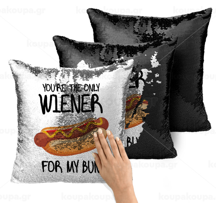 You re the only wiener for my bun, Μαξιλάρι καναπέ Μαγικό Μαύρο με πούλιες 40x40cm περιέχεται το γέμισμα