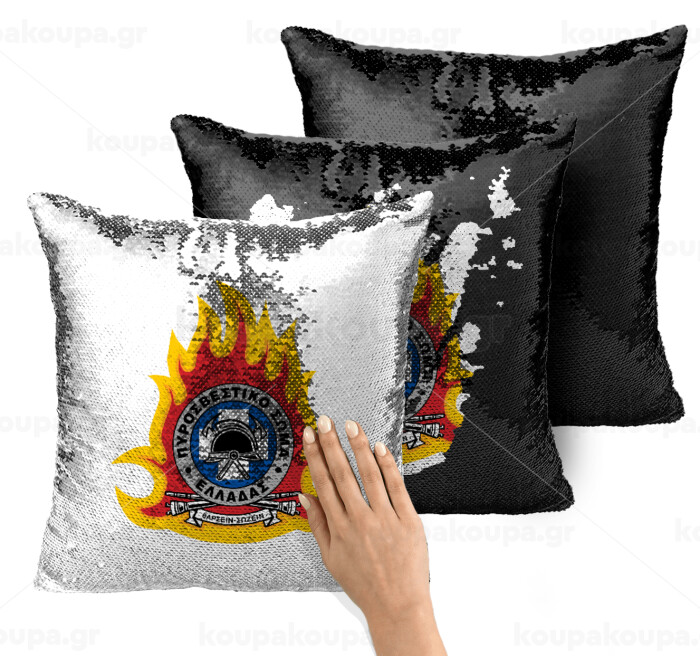 Πυροσβεστικό σώμα Ελλάδος, Μαξιλάρι καναπέ Μαγικό Μαύρο με πούλιες 40x40cm περιέχεται το γέμισμα