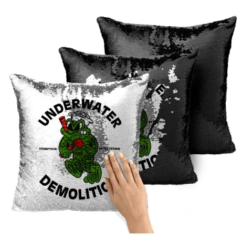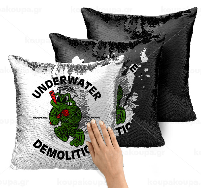 Underwater Demolition, Μαξιλάρι καναπέ Μαγικό Μαύρο με πούλιες 40x40cm περιέχεται το γέμισμα