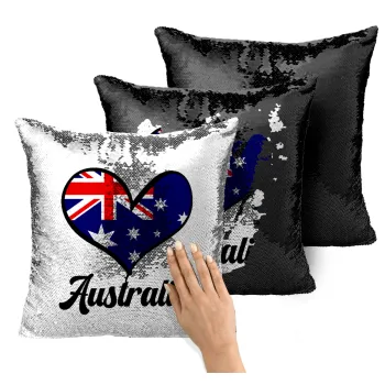 Australia flag, Μαξιλάρι καναπέ Μαγικό Μαύρο με πούλιες 40x40cm περιέχεται το γέμισμα
