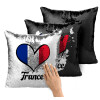 France flag, Μαξιλάρι καναπέ Μαγικό Μαύρο με πούλιες 40x40cm περιέχεται το γέμισμα
