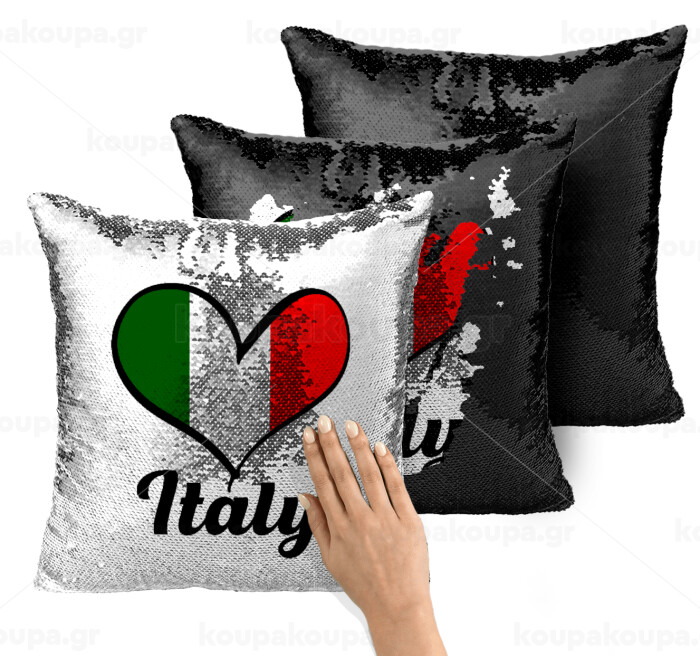 Italy flag, Μαξιλάρι καναπέ Μαγικό Μαύρο με πούλιες 40x40cm περιέχεται το γέμισμα