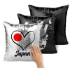 Japan flag, Μαξιλάρι καναπέ Μαγικό Μαύρο με πούλιες 40x40cm περιέχεται το γέμισμα