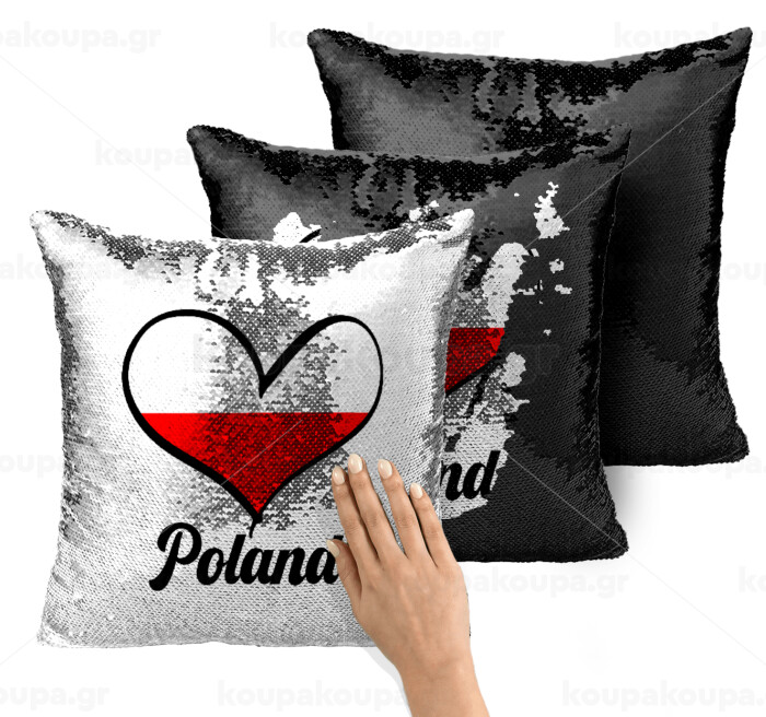 Poland flag, Μαξιλάρι καναπέ Μαγικό Μαύρο με πούλιες 40x40cm περιέχεται το γέμισμα
