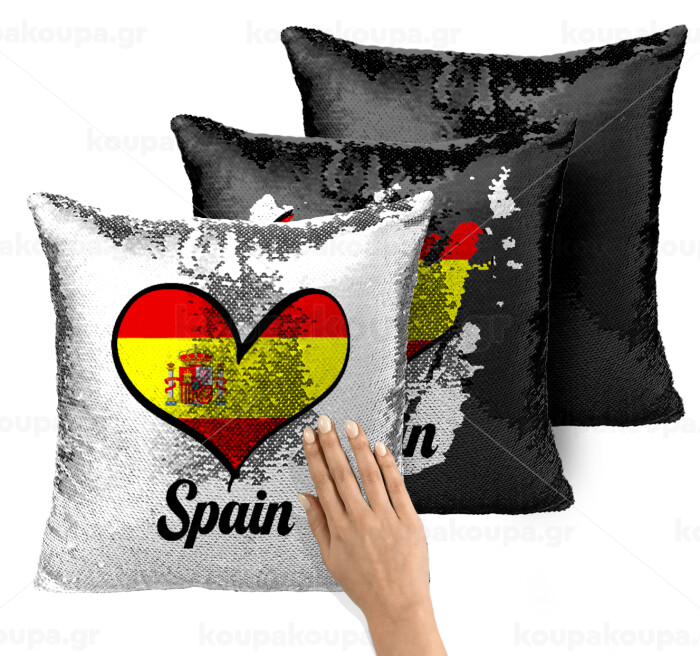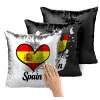 Spain flag, Μαξιλάρι καναπέ Μαγικό Μαύρο με πούλιες 40x40cm περιέχεται το γέμισμα