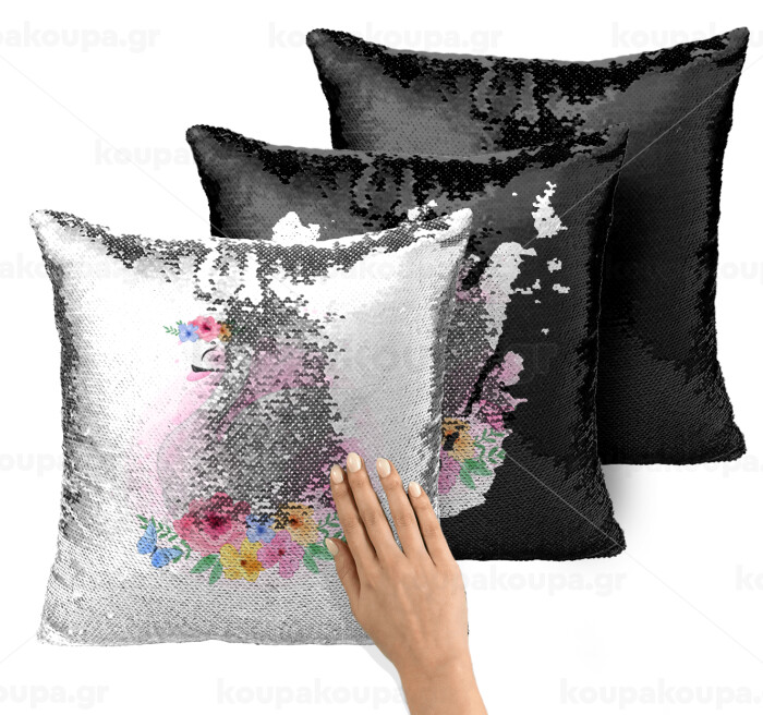 White swan, Μαξιλάρι καναπέ Μαγικό Μαύρο με πούλιες 40x40cm περιέχεται το γέμισμα