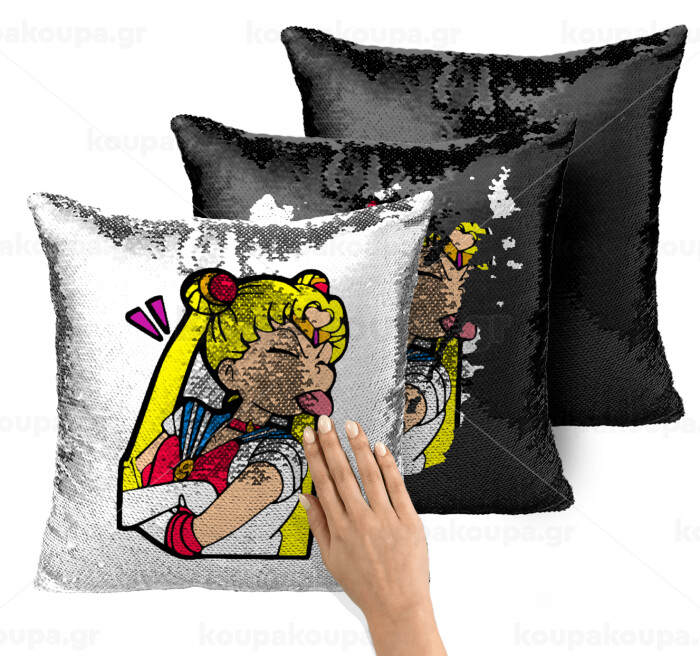 Sailor Moon, Μαξιλάρι καναπέ Μαγικό Μαύρο με πούλιες 40x40cm περιέχεται το γέμισμα