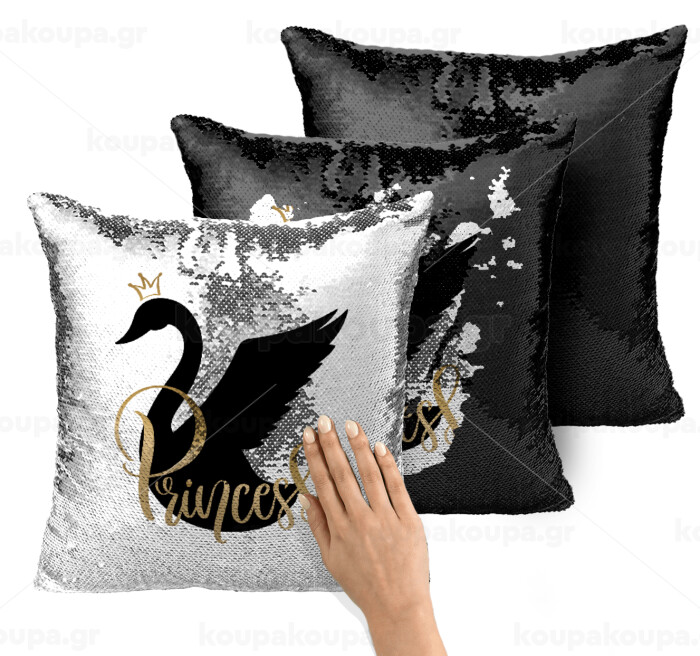 Swan Princess, Μαξιλάρι καναπέ Μαγικό Μαύρο με πούλιες 40x40cm περιέχεται το γέμισμα