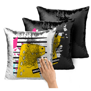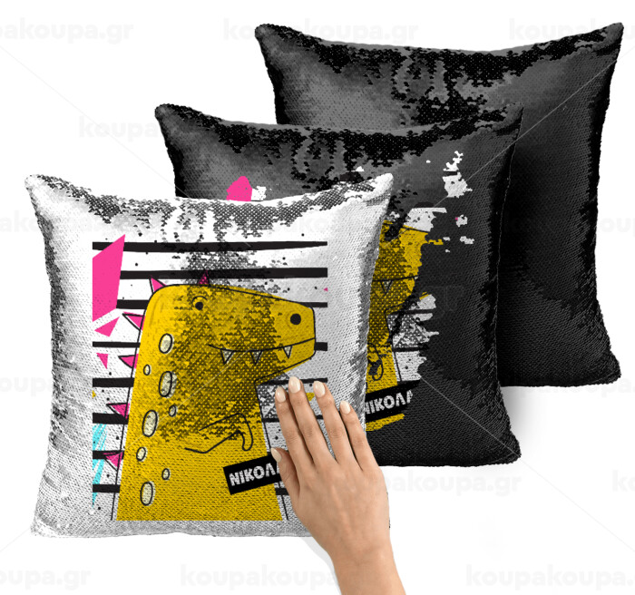 t-rex , Μαξιλάρι καναπέ Μαγικό Μαύρο με πούλιες 40x40cm περιέχεται το γέμισμα