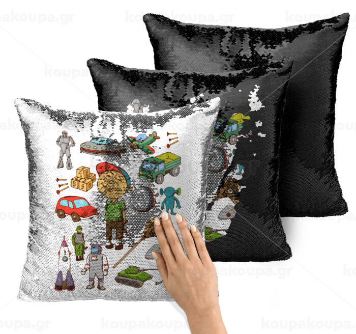 Toys Boy, Μαξιλάρι καναπέ Μαγικό Μαύρο με πούλιες 40x40cm περιέχεται το γέμισμα