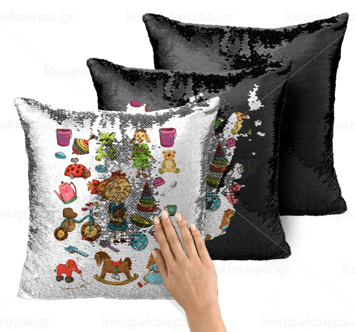 Toys Girl, Μαξιλάρι καναπέ Μαγικό Μαύρο με πούλιες 40x40cm περιέχεται το γέμισμα
