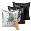 Unicorn pattern white, Μαξιλάρι καναπέ Μαγικό Μαύρο με πούλιες 40x40cm περιέχεται το γέμισμα