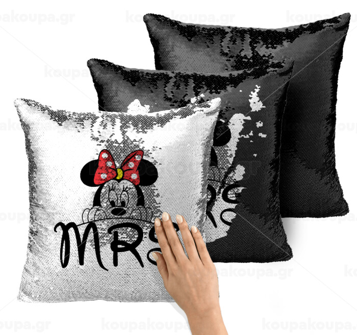 Minnie Mrs, Μαξιλάρι καναπέ Μαγικό Μαύρο με πούλιες 40x40cm περιέχεται το γέμισμα
