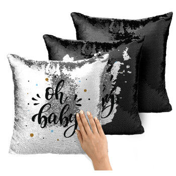 Oh baby, Μαξιλάρι καναπέ Μαγικό Μαύρο με πούλιες 40x40cm περιέχεται το γέμισμα
