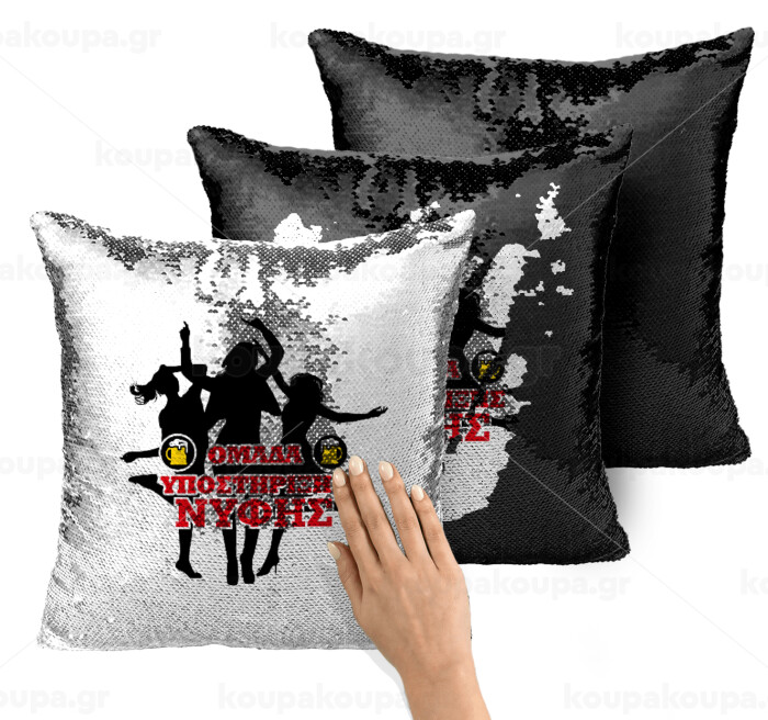Bachelor Ομάδα υποστήριξης Νύφης, Μαξιλάρι καναπέ Μαγικό Μαύρο με πούλιες 40x40cm περιέχεται το γέμισμα