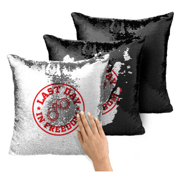 Last day freedom, Μαξιλάρι καναπέ Μαγικό Μαύρο με πούλιες 40x40cm περιέχεται το γέμισμα