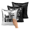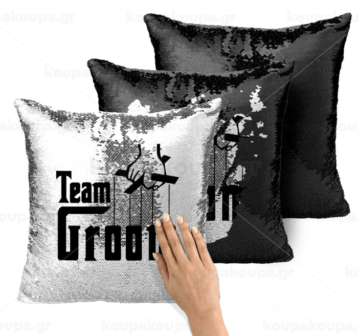 Team Groom, Μαξιλάρι καναπέ Μαγικό Μαύρο με πούλιες 40x40cm περιέχεται το γέμισμα