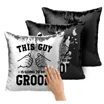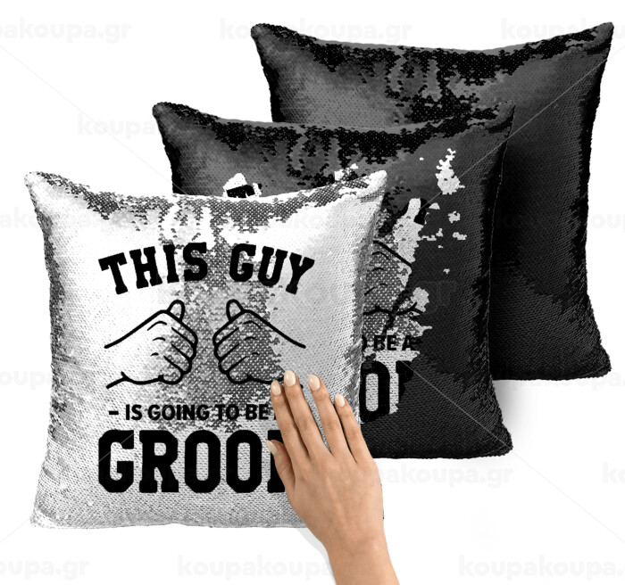 This Guy is going to be a GROOM, Μαξιλάρι καναπέ Μαγικό Μαύρο με πούλιες 40x40cm περιέχεται το γέμισμα