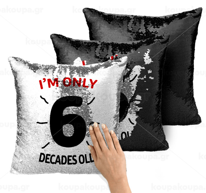 I'm only NUMBER decades OLD, Μαξιλάρι καναπέ Μαγικό Μαύρο με πούλιες 40x40cm περιέχεται το γέμισμα