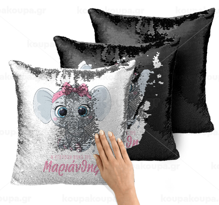 Η νονά μου, ελεφαντάκι ροζ, Μαξιλάρι καναπέ Μαγικό Μαύρο με πούλιες 40x40cm περιέχεται το γέμισμα