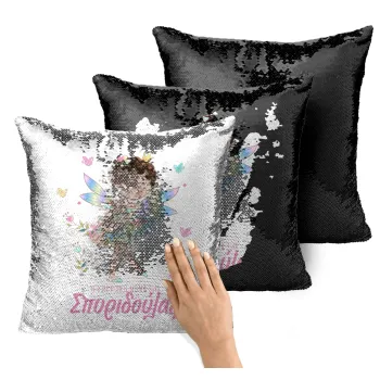 Η νονά μου, Νεράϊδα, Μαξιλάρι καναπέ Μαγικό Μαύρο με πούλιες 40x40cm περιέχεται το γέμισμα